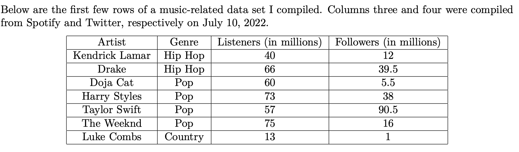 What was the unit of observation? What were the variables? What were their type?